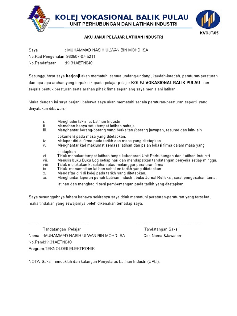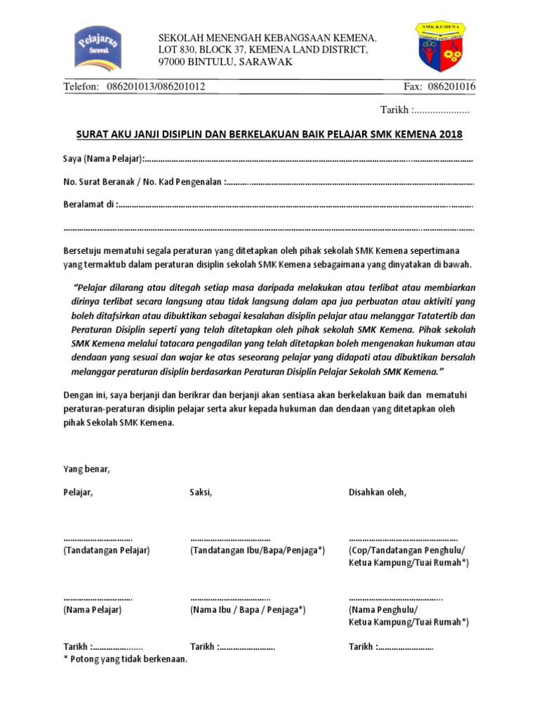 Contoh Surat Aku Janji Pelajar Letter 7saudara Com